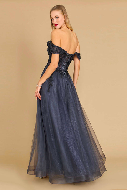 11375CH Charcoal sparkle tulle. Princess off shoulder