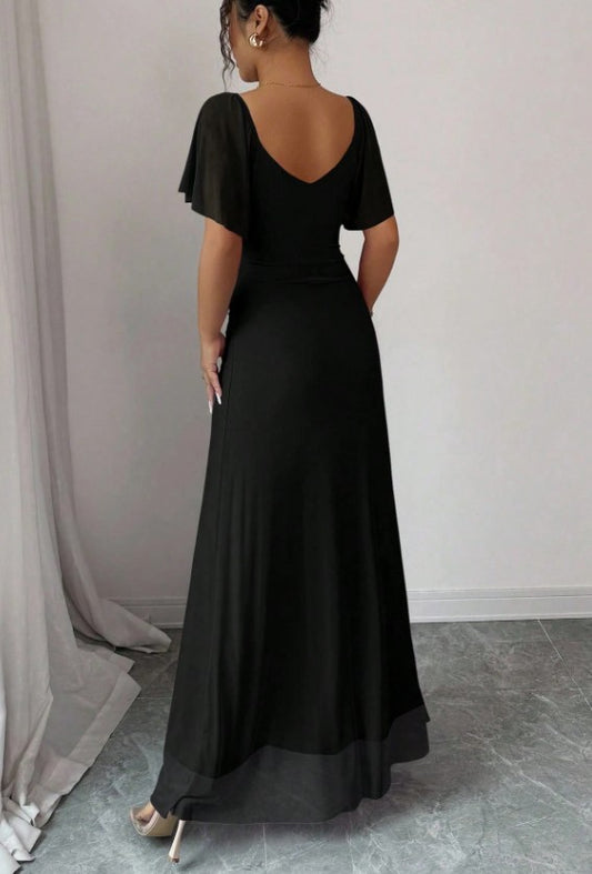 11540 Black mesh stretchy semi fitted flutter sleeve