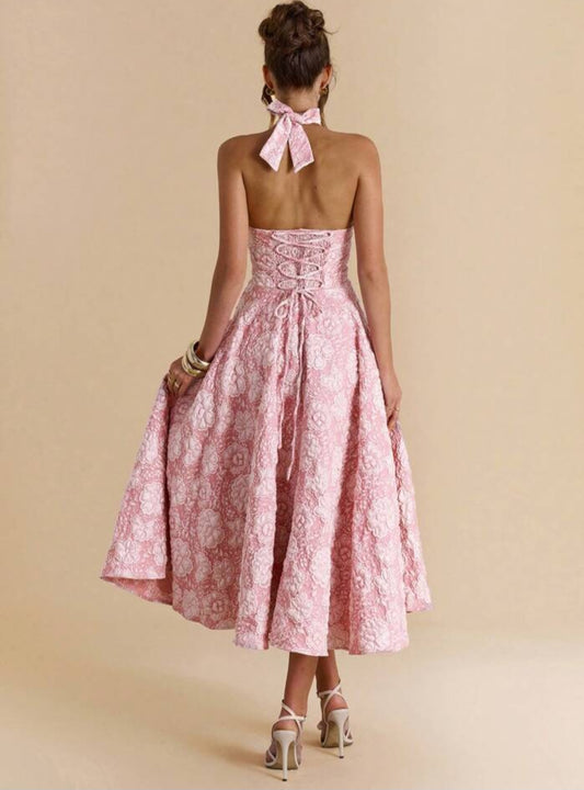 11512 Pink jacquard vintage style midi
