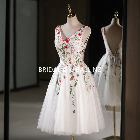 71730 V neckline. Low V back beaded bodice. Soft tulle skirt