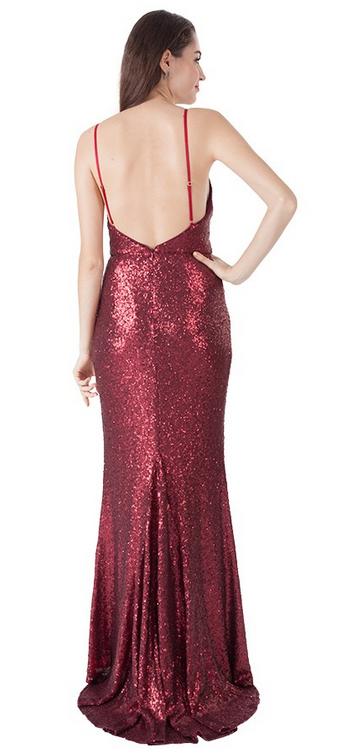 10250R Red. Fit and flare gown. Split and deep sweetheart