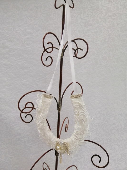BBHS41 Ivory satin and lace bridal horseshoe with lace applique