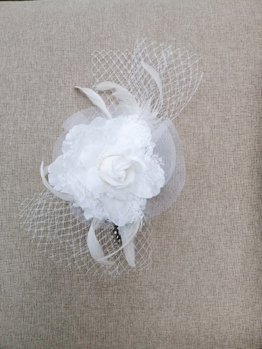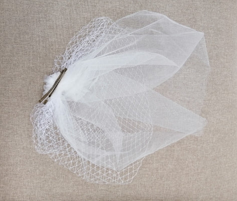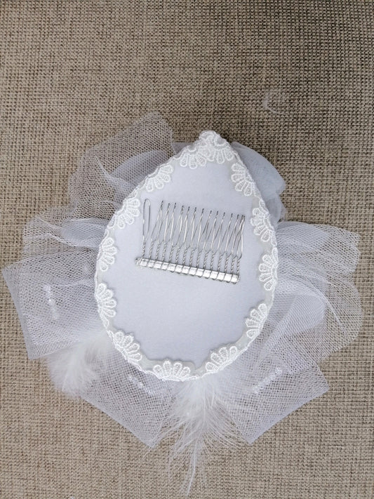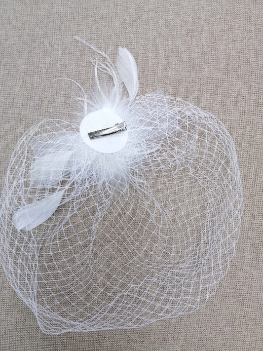 BBFAC4. Dainty, elegant white fascinator with soft feather detail.