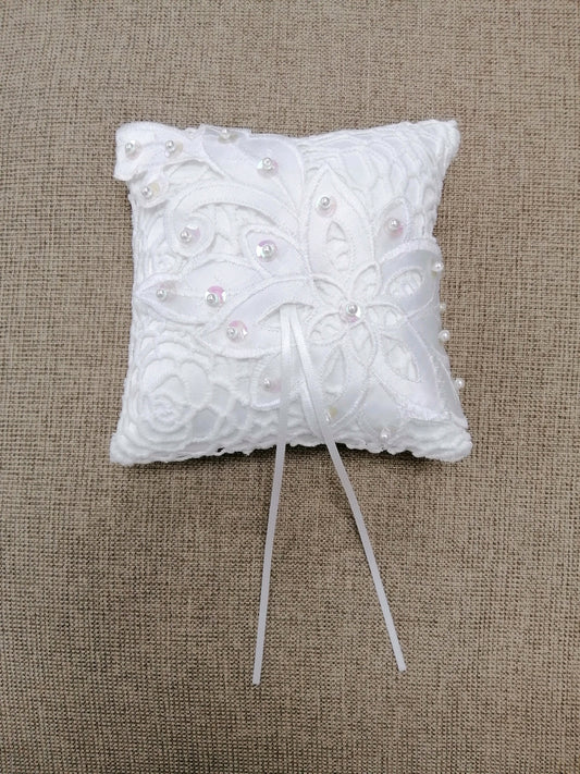 BBRP2 Lace and satin bridal Wedding Ring Pillow with applique detail