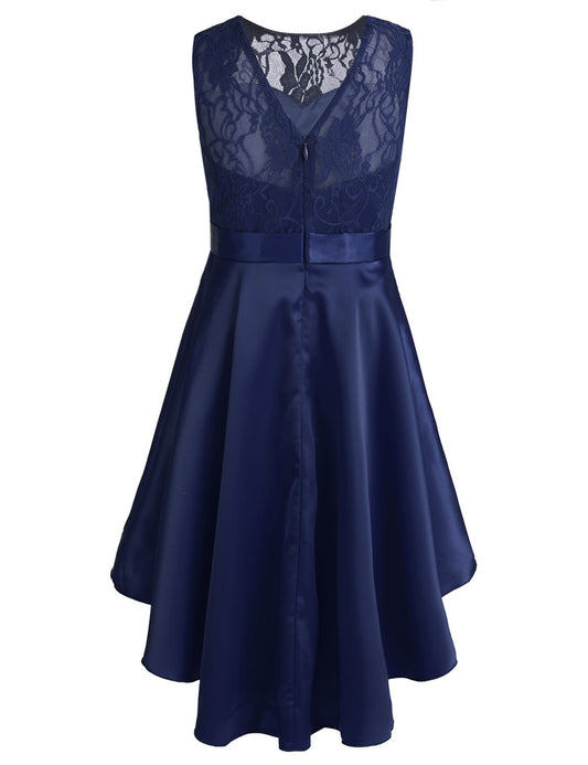G20217N. Navy lace and satin flower girl/ party dress age 14.
