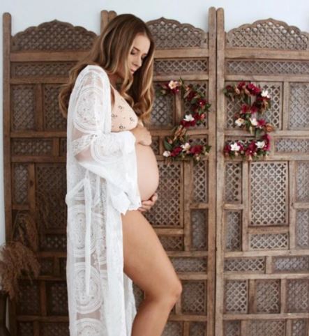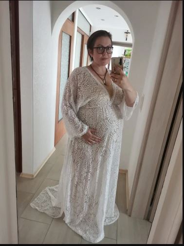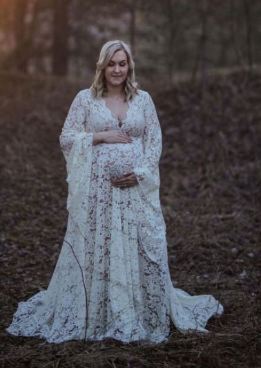 The Ashleigh. Bohemian lace V neck long trumpet sleeves. Hire. $99.00