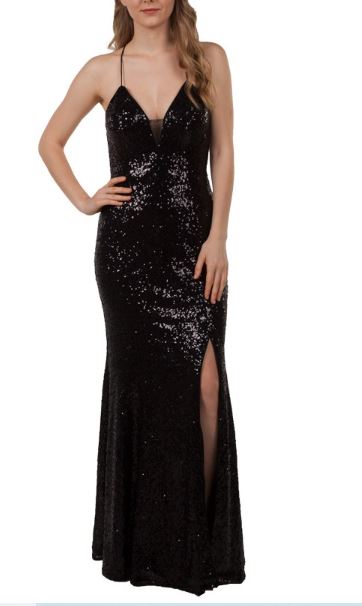 11176B Soft black stretch sequin. Low open back.