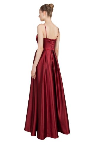 11177 Burgundy satin A-line ball gown.