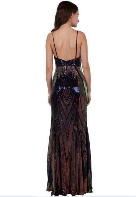 11380B Black, Long Sparkling Cowl Corset A-line wiith split