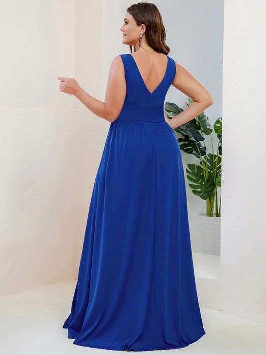 11301 Royal blue. Maxi length gown. Stretch crepe. V neck. HIRE