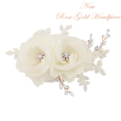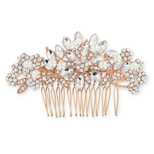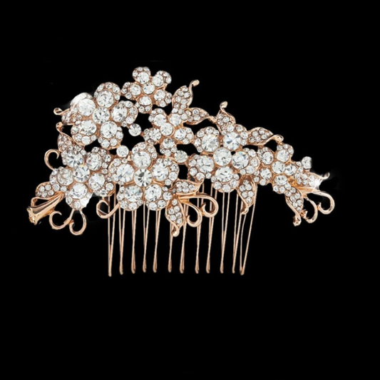 7463 CRYSTAL FLOWERS HAIR COMB - ROSE GOLD.