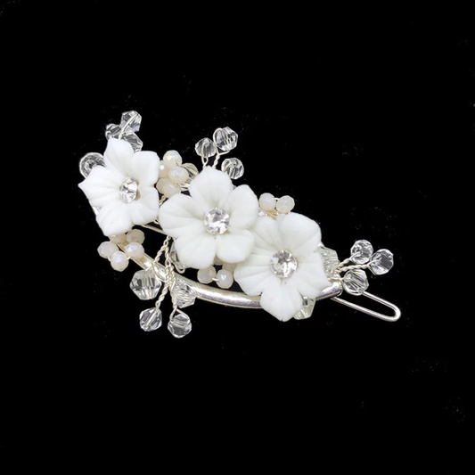 7654 Luxe hair clip. Hand painted porcelain flowers. High quality crystals.