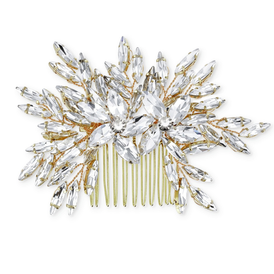 #7205 Bridal hair comb. Lightweight with clear glass crystals on a gold plated comb