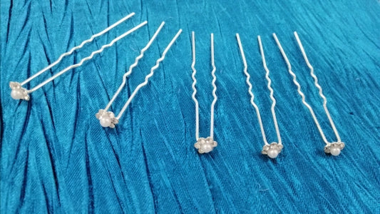 BBHP1 small flower hairpin with pearl in the center 5 for $10