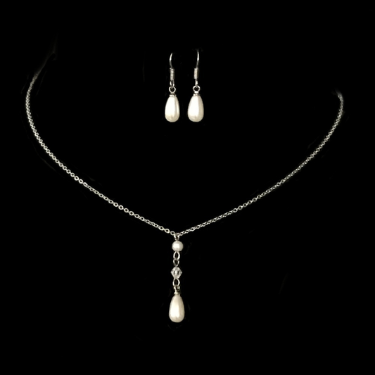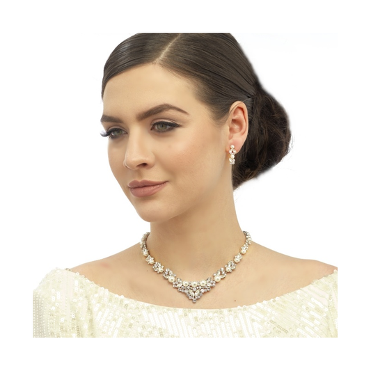 #7321 Crystal chic bridal necklace set with a glamorous combination of ivory pearls and swarovski crystals By SASSB.