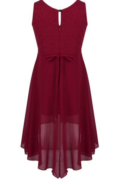 G20236B Burgundy, chiffon, high low flower girl, party dress age 10