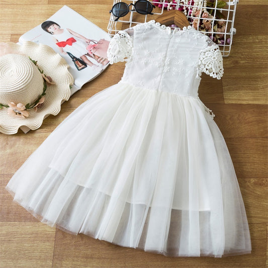 G20276W. White flowers and sparkle tulle flower girl, party dress. Age 6