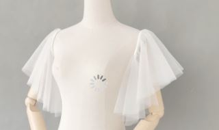 BBGV20 off white soft tulle wrist gloves with pearl cuff