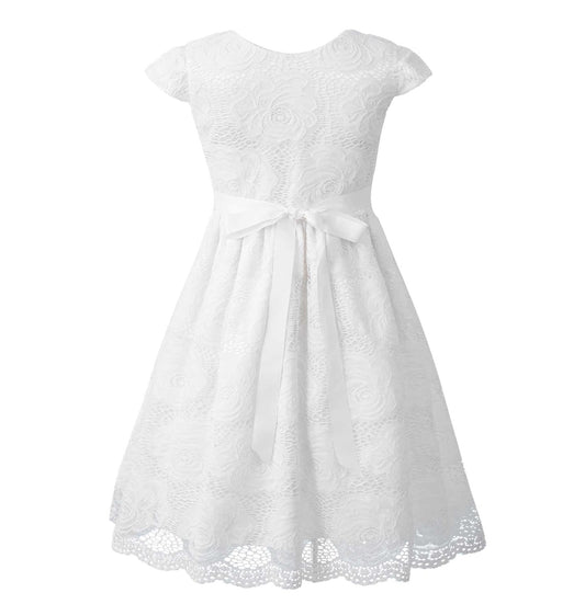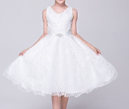 G20207 white lace v neck flower girl, communion, party dress. Age 3-10