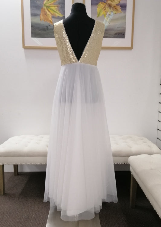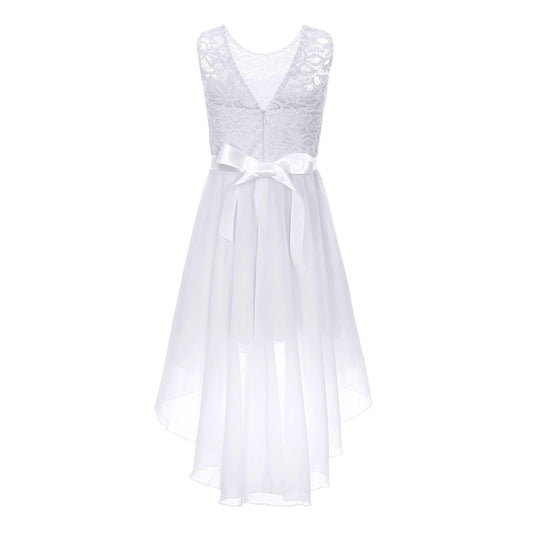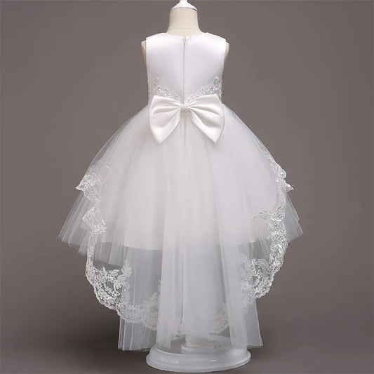 G20275W. White high-low tulle and lace princess. Girls party dress. Age 6.