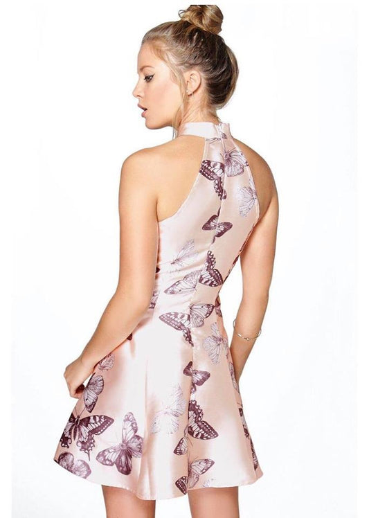 11331- White & Nude High Neck Tie Side Shimmer Sparkle Mini Dress.