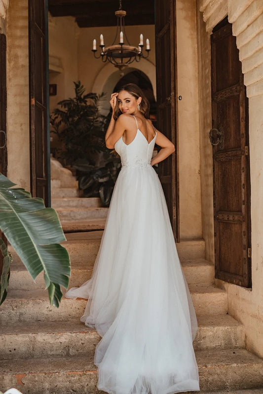 71760 Fairytale tulle V neck full skirt