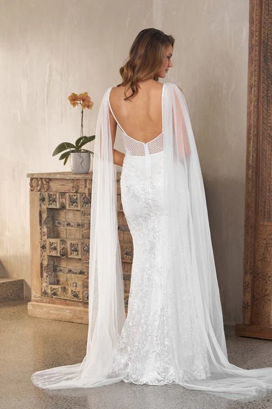 71942 Stunning beaded lace. Detachable tulle 'wings'