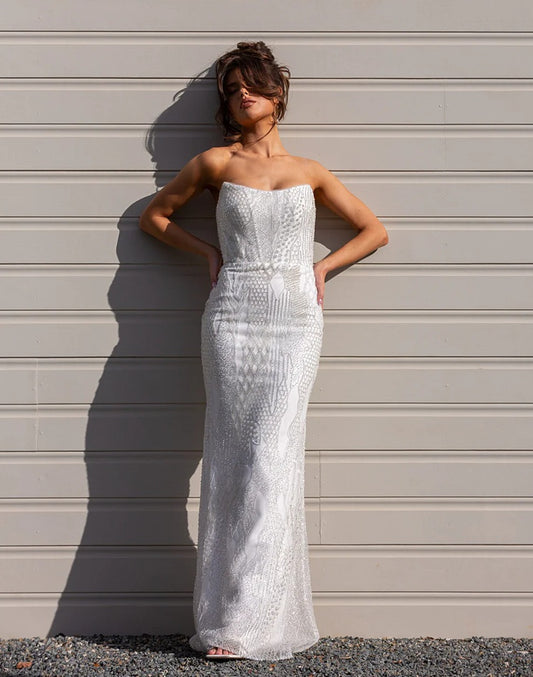 71885 SOPHIA. Luxurious stretch satin. Beaded bodice.