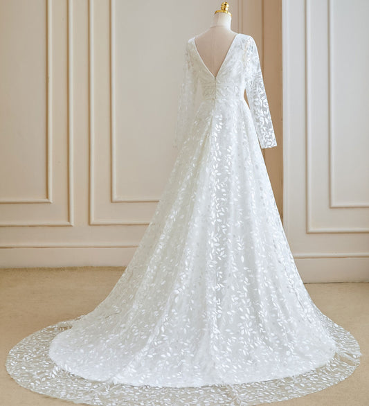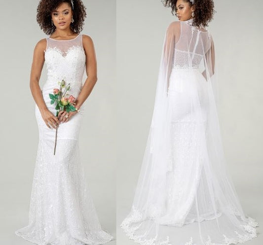 71606 Lace gown. Pearl detail. Optional cape veil.