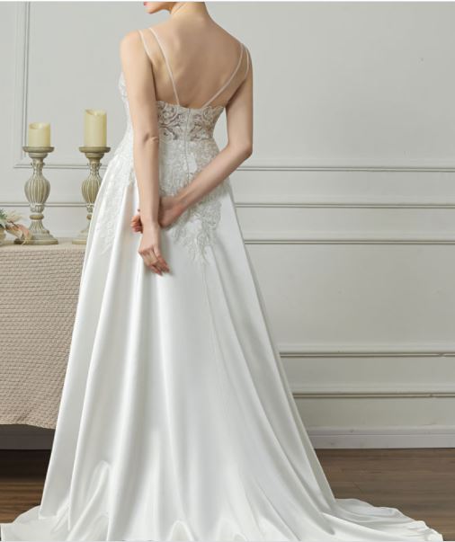 71892 ivory satin, corset, fitted, split, detailed bodice