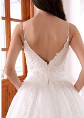 71626 Feminine, tulle A line gown with spagetti straps and beautiful beading
