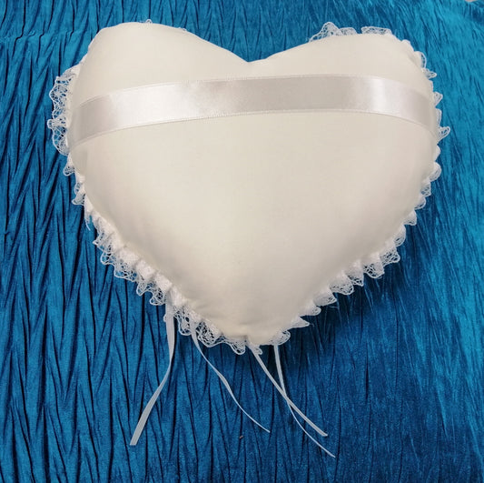 BBRP5 Soft ivory cotton with lace edge. Heart shaped, wedding ring pillow/ carrier