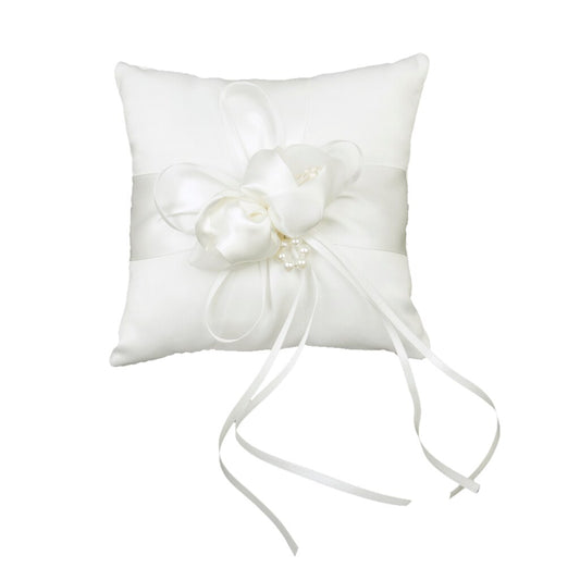 BBRP9 Cream Satin with pearl detail Wedding Ring Pillow/ carrier 15 x 15