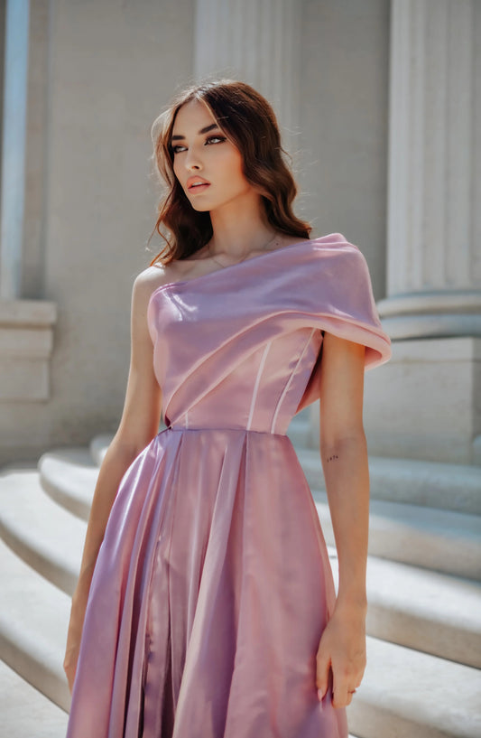11377 TK315 Silky organza/satin, one shoulder Tea length.