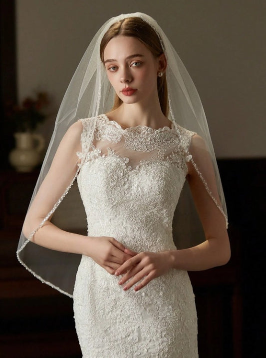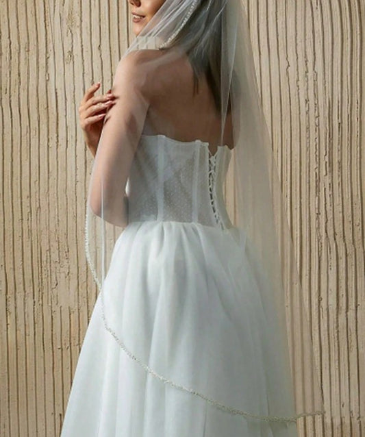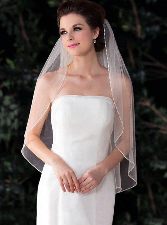 BBV101 single layer pearl beaded edge fingertip veil