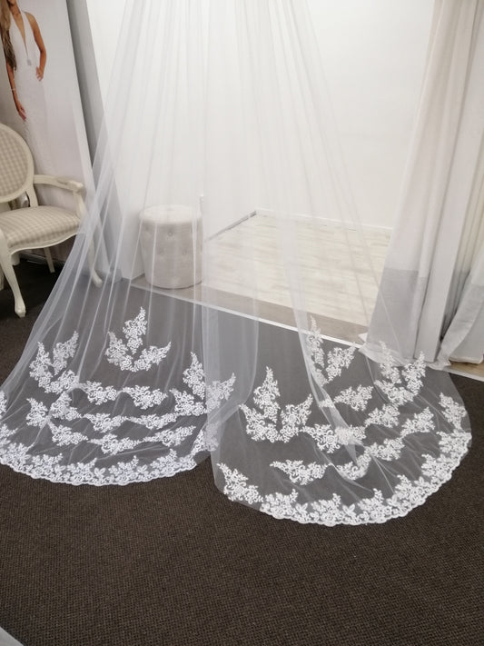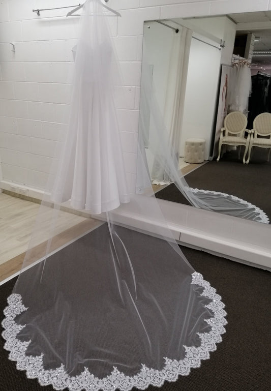 BBV4 single layer 3m Cathedral veil with lace detail trim.