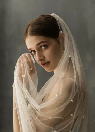 BBV60 2m long. Single layer pearl veil with comb