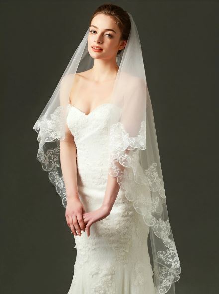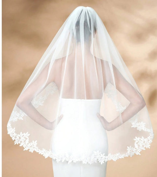 BBV85 2 layer fingertip veil with pretty lace edge.