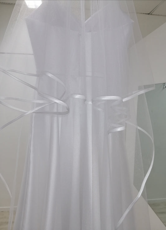 BBV17 double layer Cathedral veil with satin trim. 3m
