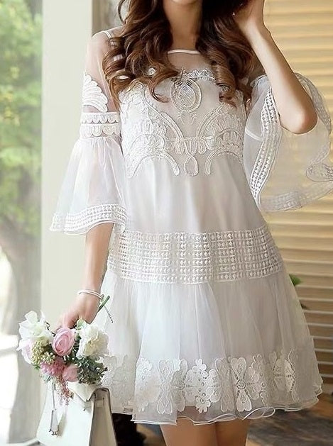 71824 Cute short wedding dress with lace detail.