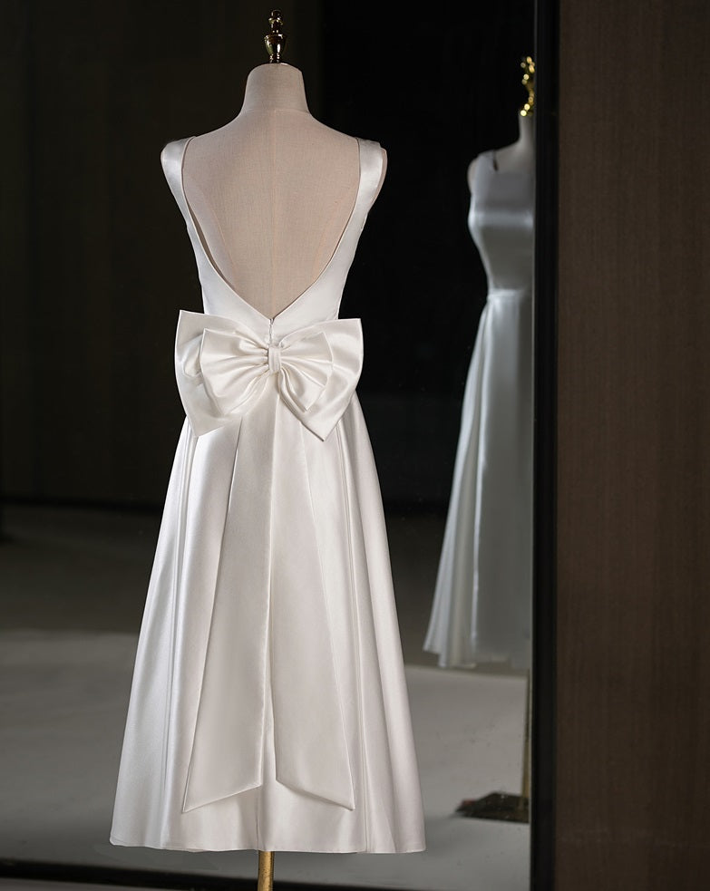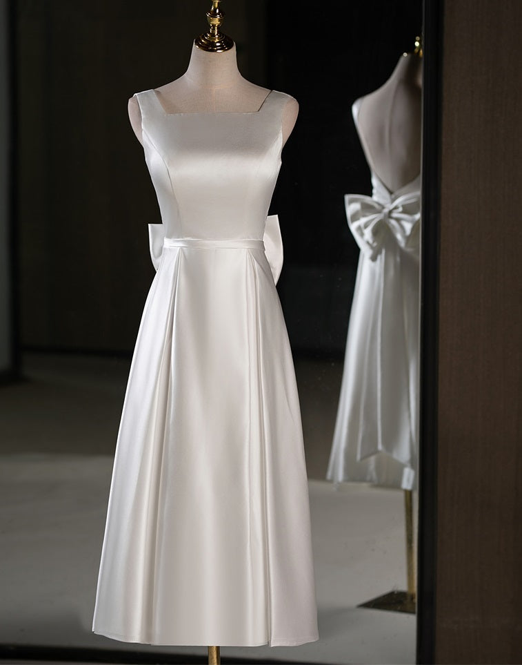 71866- Simple satin midi wedding dress with square neckline