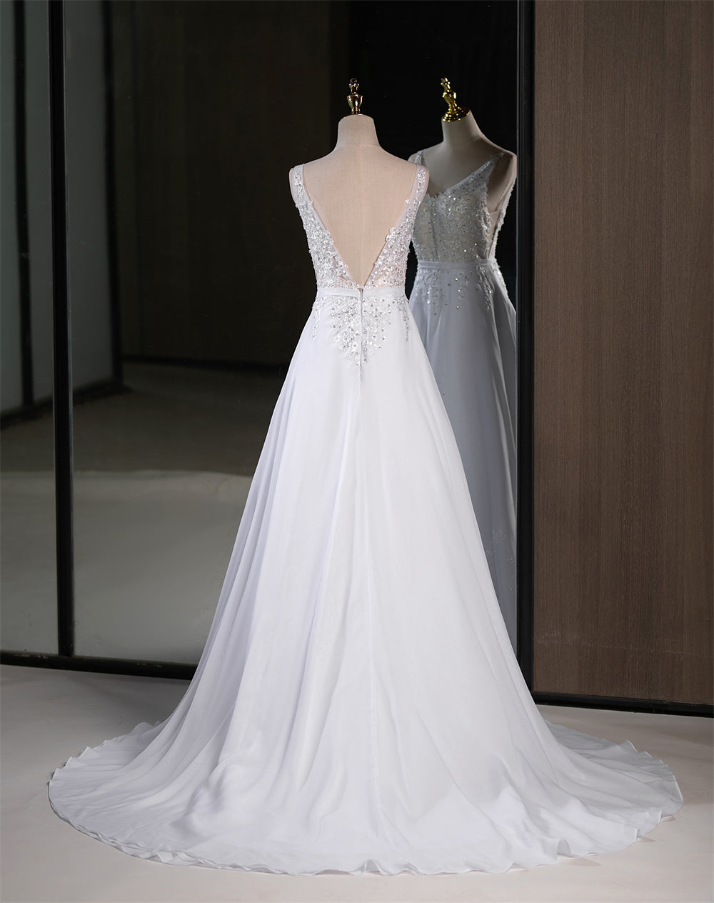 The bodice has a nude lining and beaded detail running into the skirt. An inch wide waistband for a flattering fit.