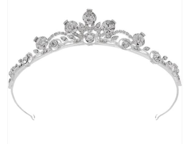 7335 Silver 'Carmen' Tiara with large, sparkling crystal jewels