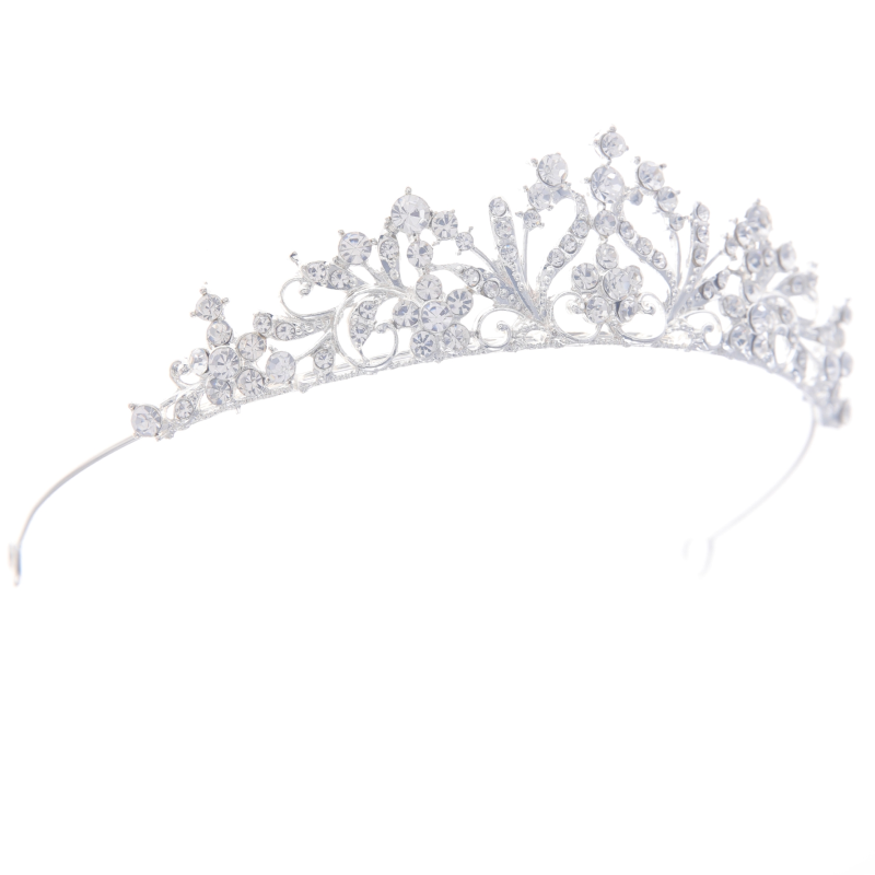 Captivate all with the shimmering Starlet Tiara. Adorned with dazzling rhinestone crystals and clear beads Measures 7cm high x 15cm wide for a regal, statement-making look Crafted with a lustrous silver finish for timeless sophistication The Elegance Tiara is the epitome of elegance and glamour, destined to make you the center of attention. Meticulously designed with an array of sparkling rhinestone crystals and clear beads, this exquisite headpiece catches the light and dazzles onlookers, evoking a sense of timeless sophistication. The silver-toned finish lends a regal, high-end look that seamlessly complements any bridal gown or formal attire.