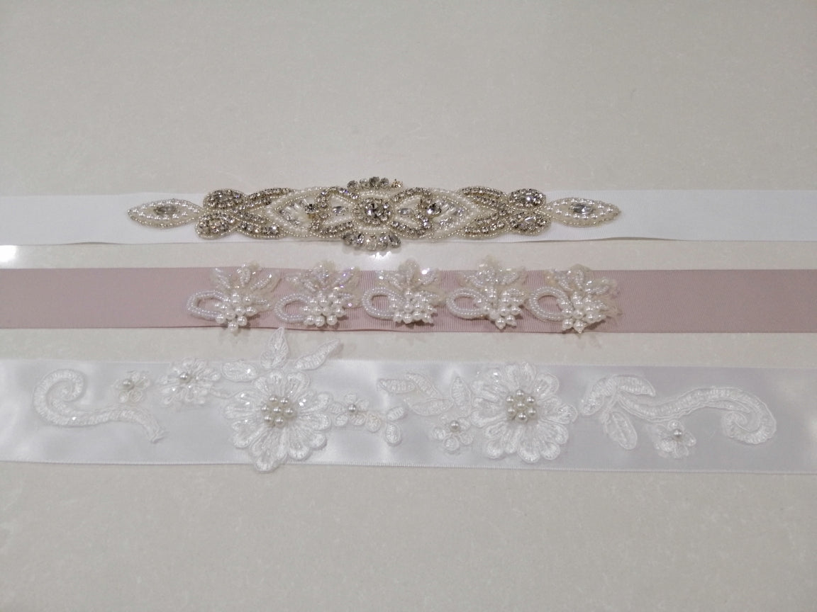 The photos with the 2 other belts show the difference shades of ribbon. The bottom ribbon is white satin