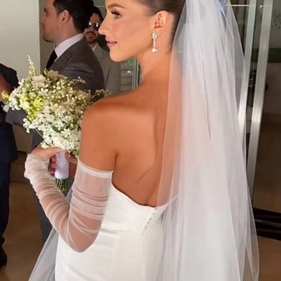 BBGV81G off white soft tulle pull on sleeve/glove