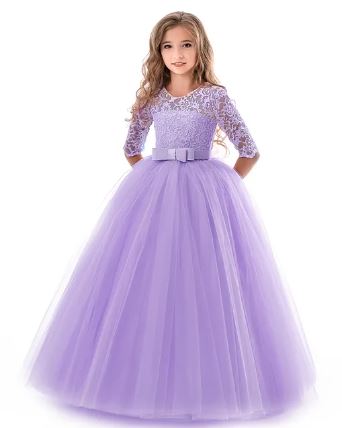 G20277. Lavender, 3/4 sleeve, lace bodice, tulle flower girl, party dress. Age 10