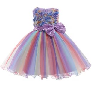 G20304. Purple flower bodice and rainbow tulle skirt