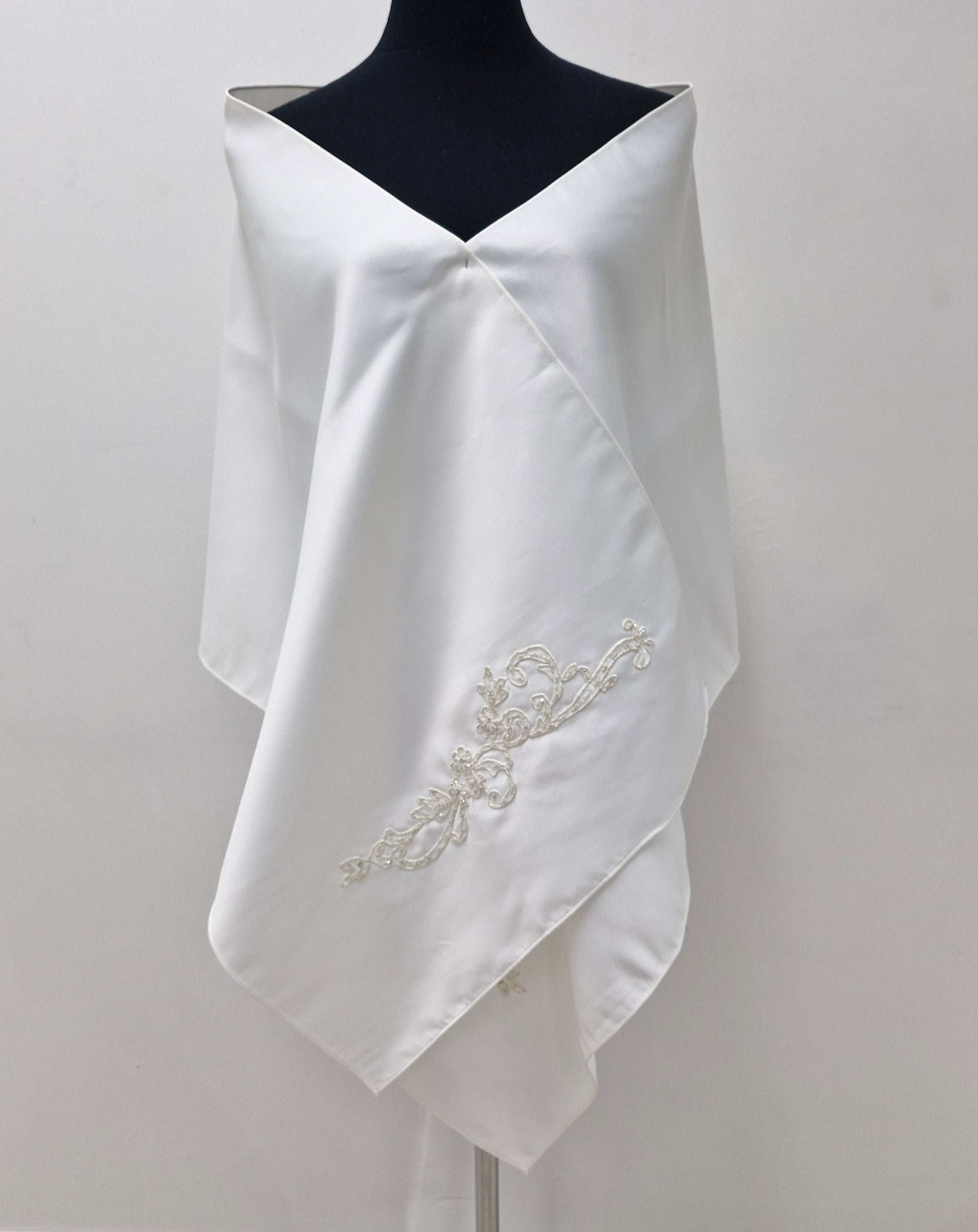 Wp1001 thick cream satin wrap. Stunning gold detail.