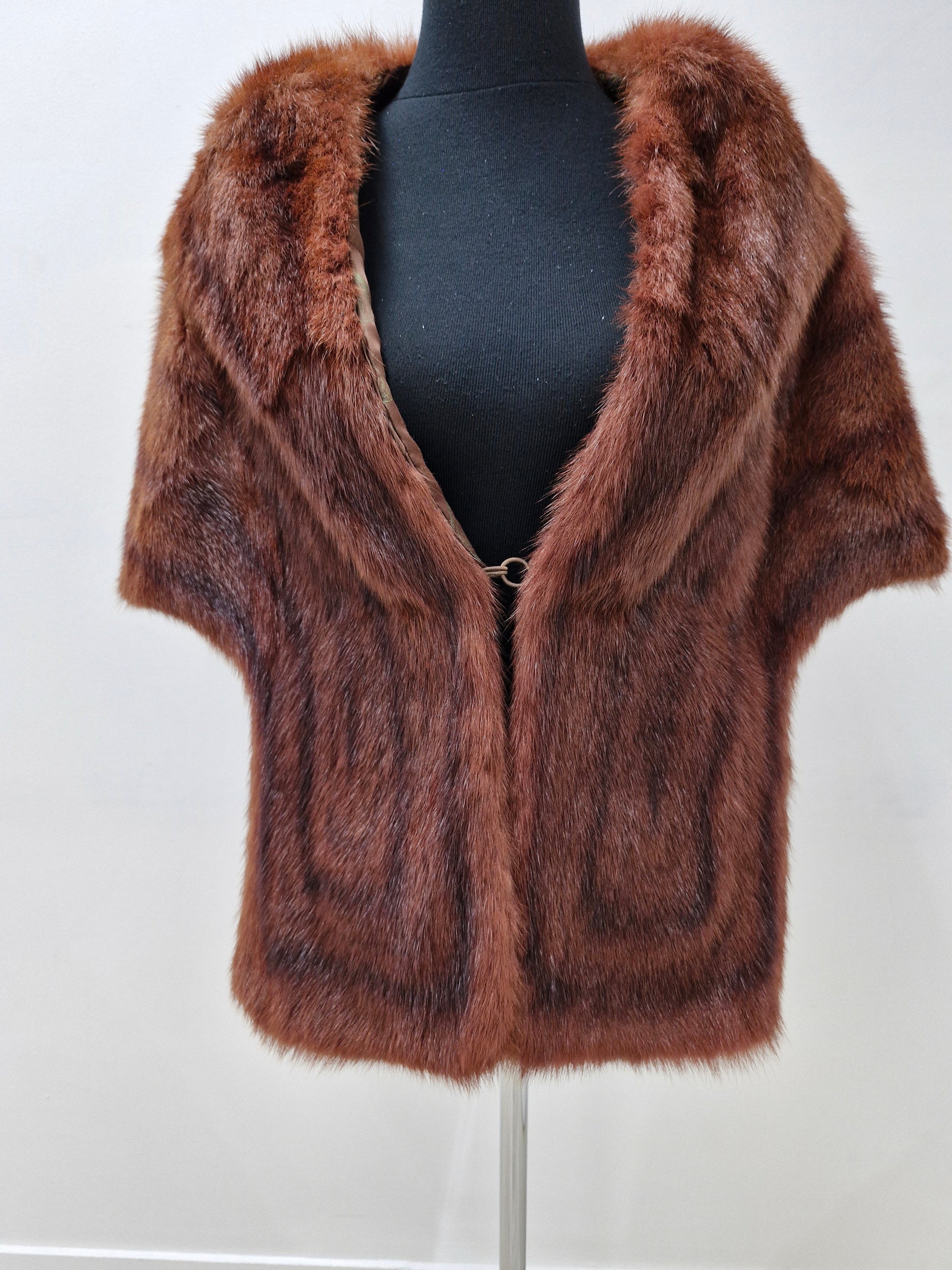 Wp1009. Vintage Faux fur cape-jacket